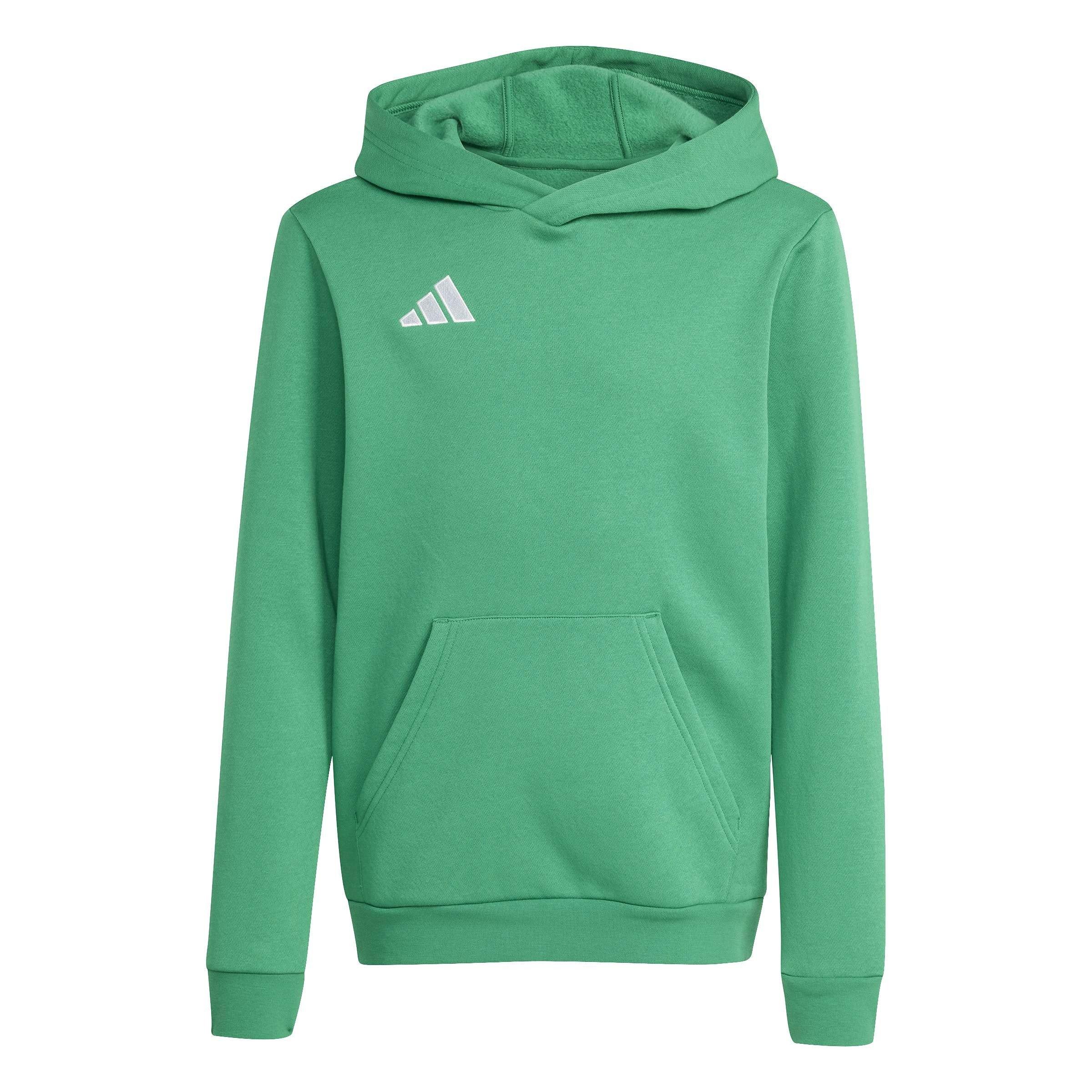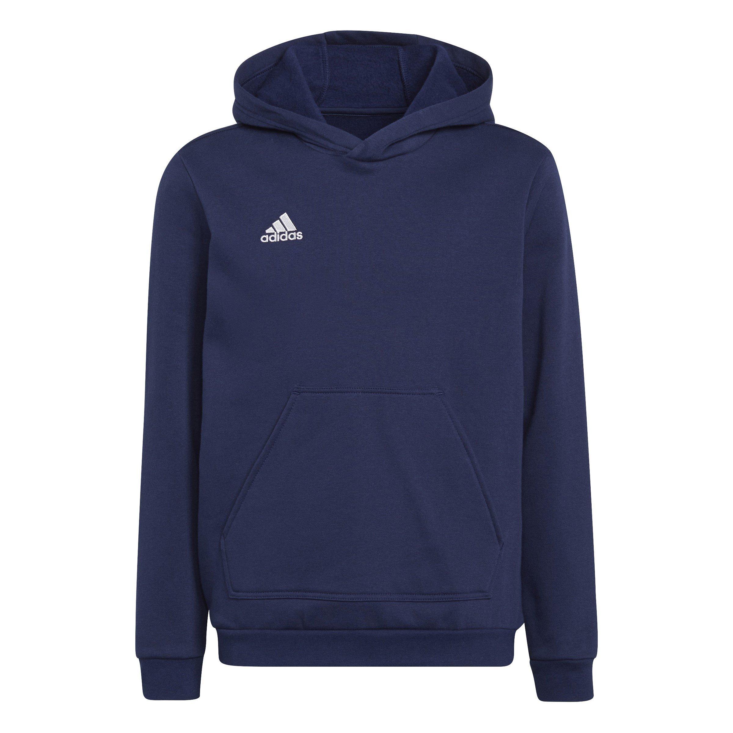 Ce sweat à capuche adidas ENT22 est un modèle à enfiler avec des manches longues et des bordures côtelées pour un ajustement confortable. Il présente une encolure à capuche ainsi qu'une poche kangourou pour un look classique et une construction légère. Ce sweat à capuche est d'une couleur unie avec un logo signature et est complet avec la marque adidas.