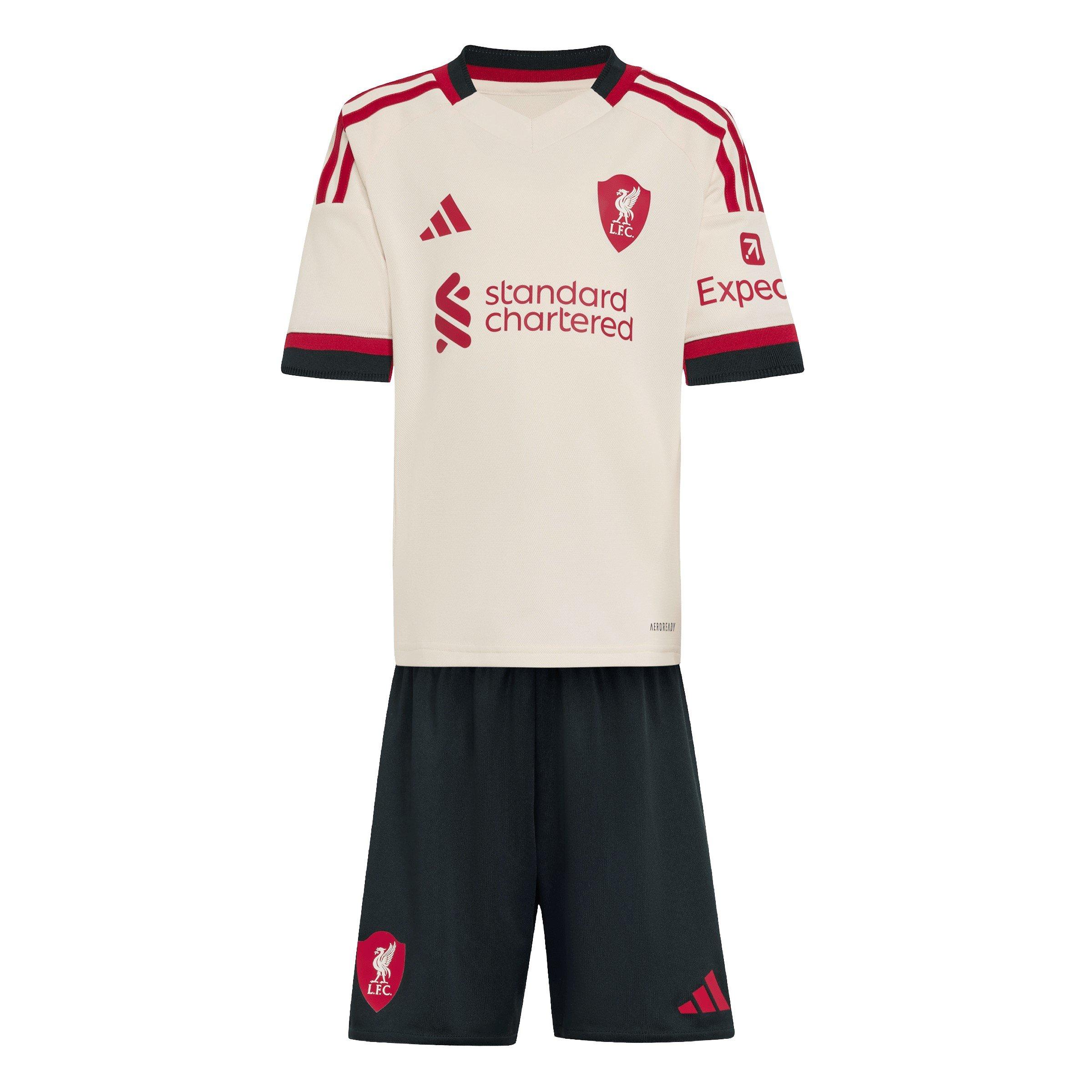 Laissez votre étoile montante du football soutenir avec style grâce au minikit extérieur adidas Liverpool pour la saison 2025/2026. Arborant le logo emblématique à 3 barres et les 3 bandes pour une finition authentique et signature. Que ce soit en encourageant depuis les tribunes ou en jouant avec des amis, ce kit de football en deux pièces est le compagnon parfait.