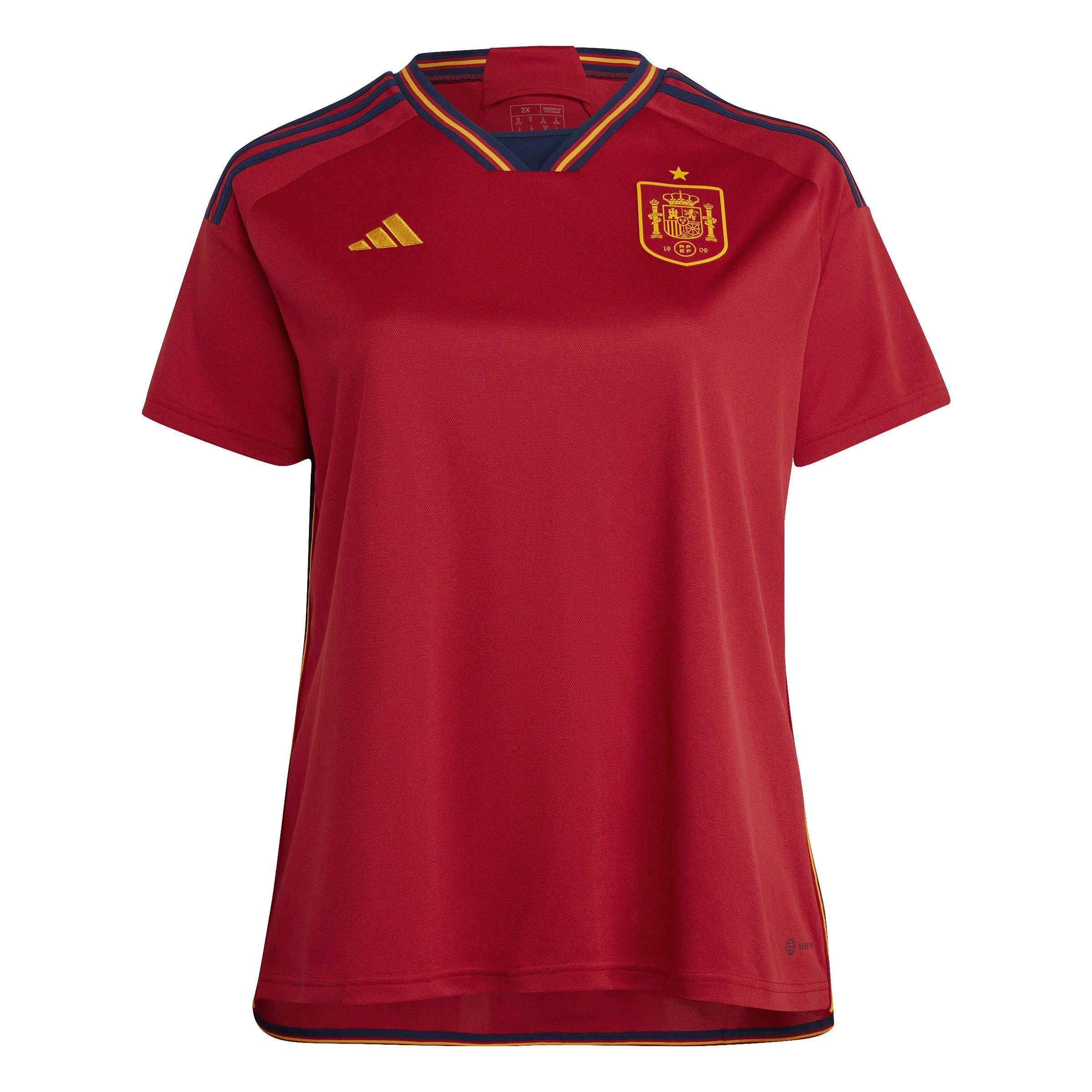 Une nation unie. Construite à partir de l'ADN unique du football espagnol, cette tenue de domicile intemporelle est dominée par les célèbres couleurs rouges de l'équipe. Sur la poitrine, les versions tissées du badge d'équipe mis à jour de l'Espagne et du logo à 3 barres d'adidas sont fièrement affichées.