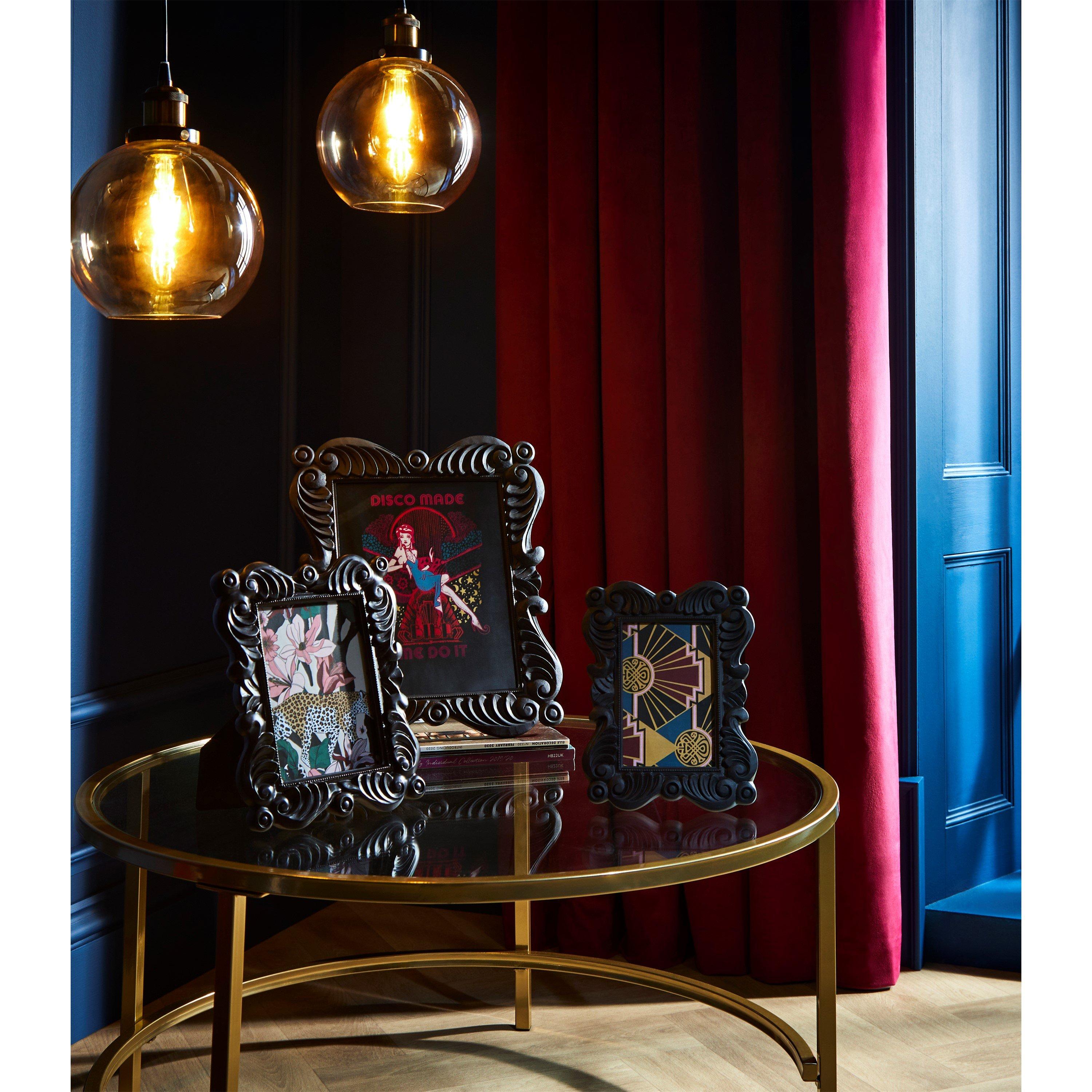 Rehaussez vos souvenirs chéris avec le cadre photo Biba Jasmine, un mélange éblouissant de glamour vintage et de design complexe. Inspiré de l'opulence de l'ère baroque, ce cadre photo est une pièce maîtresse qui met en valeur vos photos avec style. Disponible en trois finitions exquises - or, noir et argent - et trois tailles pratiques - 4x6 pouces, 5x7 pouces et 8x10 pouces. Bien que chaque cadre soit vendu séparément, envisagez d'acheter l'ensemble complet pour une présentation cohérente et captivante de vos photos préférées. Mélangez et assortissez les tailles et les finitions pour créer une galerie personnalisée. Transformez votre espace de vie en un havre d'élégance intemporelle avec le cadre photo Biba Jasmine. Mettez en valeur vos souvenirs les plus précieux avec panache.