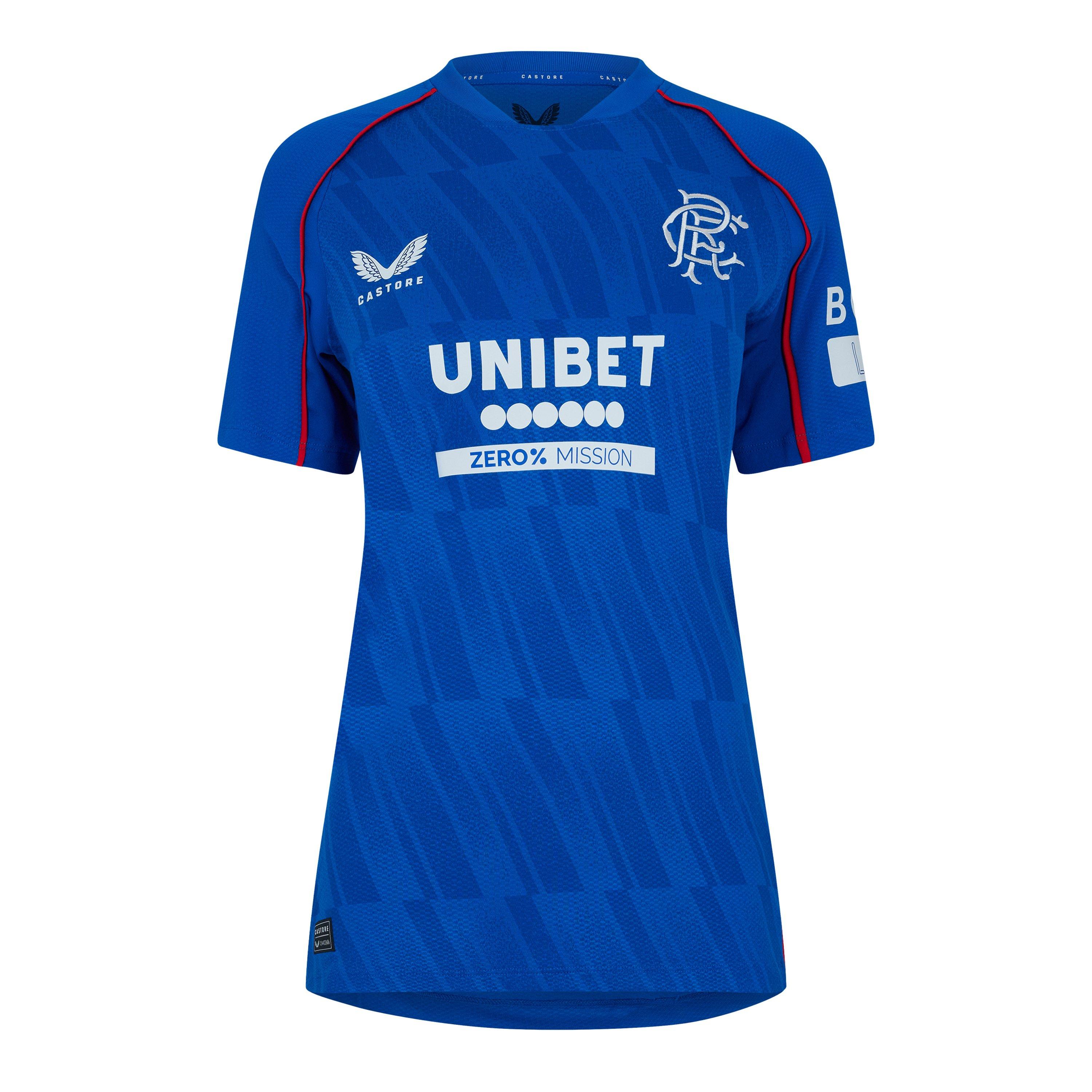 Marchez sur le terrain avec élégance et détermination dans le maillot domicile Castore Rangers 2024 2025. Fabriqué à partir d'un polyester léger avec des inserts respirants intégrés dans les zones à haute température et des trous découpés au laser sous les bras pour vous assurer de rester toujours au frais, l'encolure en V et la coupe ajustée offrent une silhouette flatteuse pour le corps féminin.