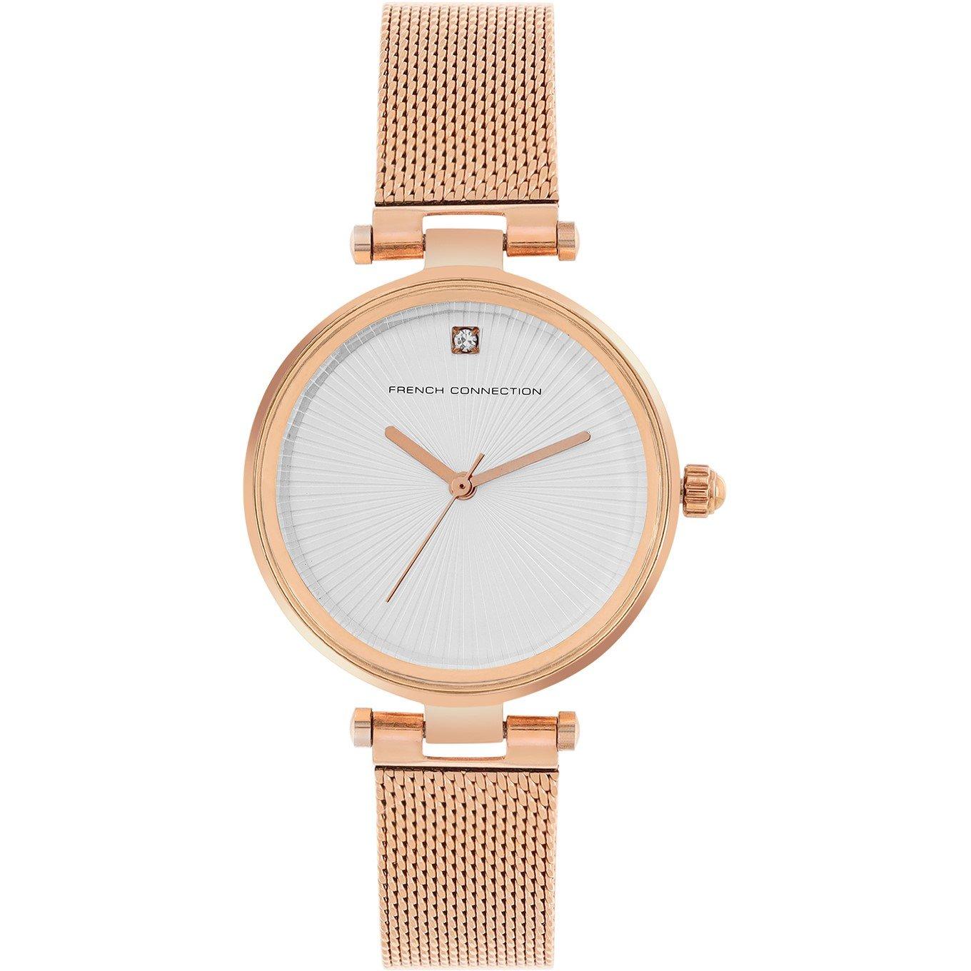 French Connection Connection Haven SILVER Round Analog Watch With Rose Gold Strap for Women