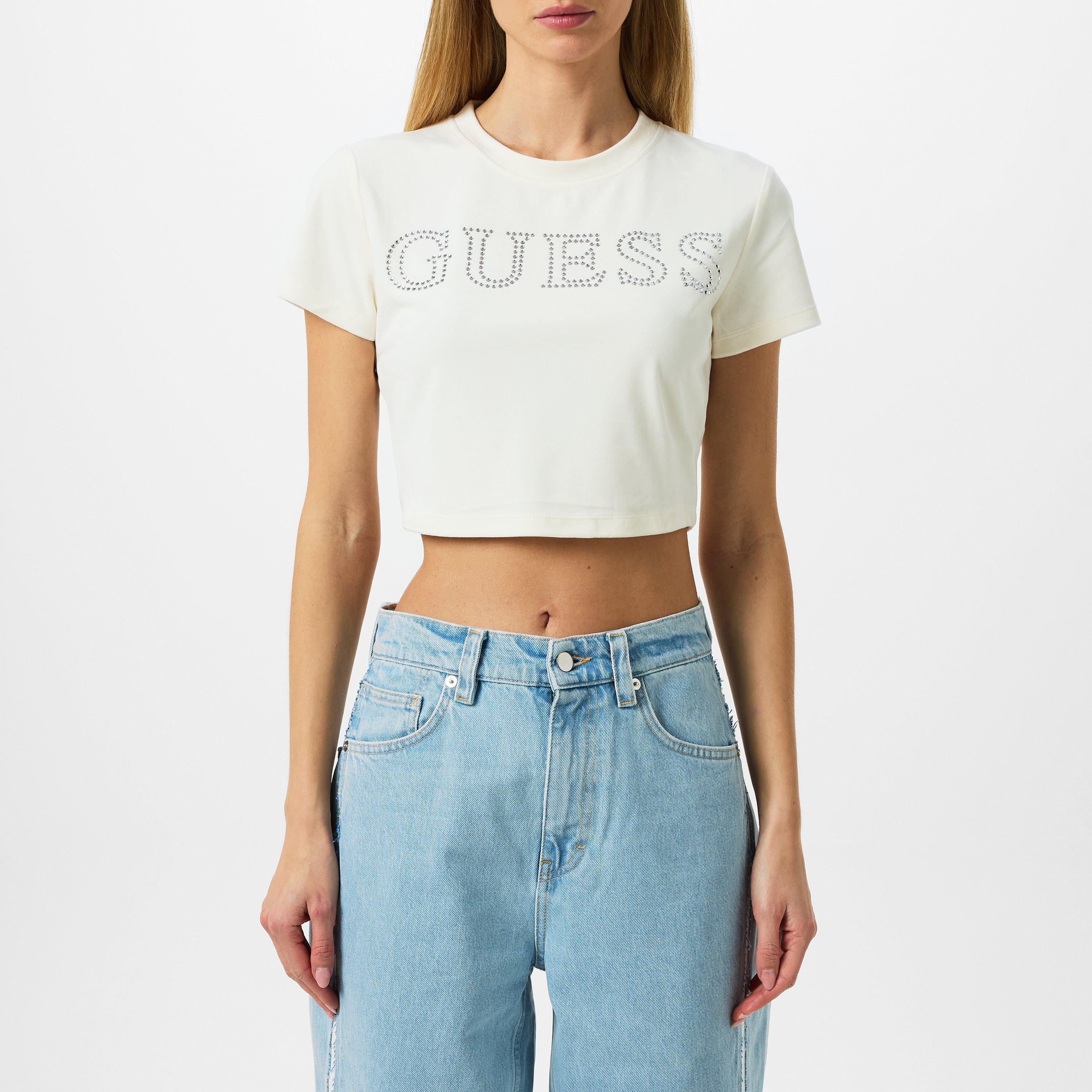 Le crop top couture pour femmes de Guess offre un style avec des lignes épurées et une coupe contemporaine, conçu pour une intégration facile dans la garde-robe avec des détails de la marque.