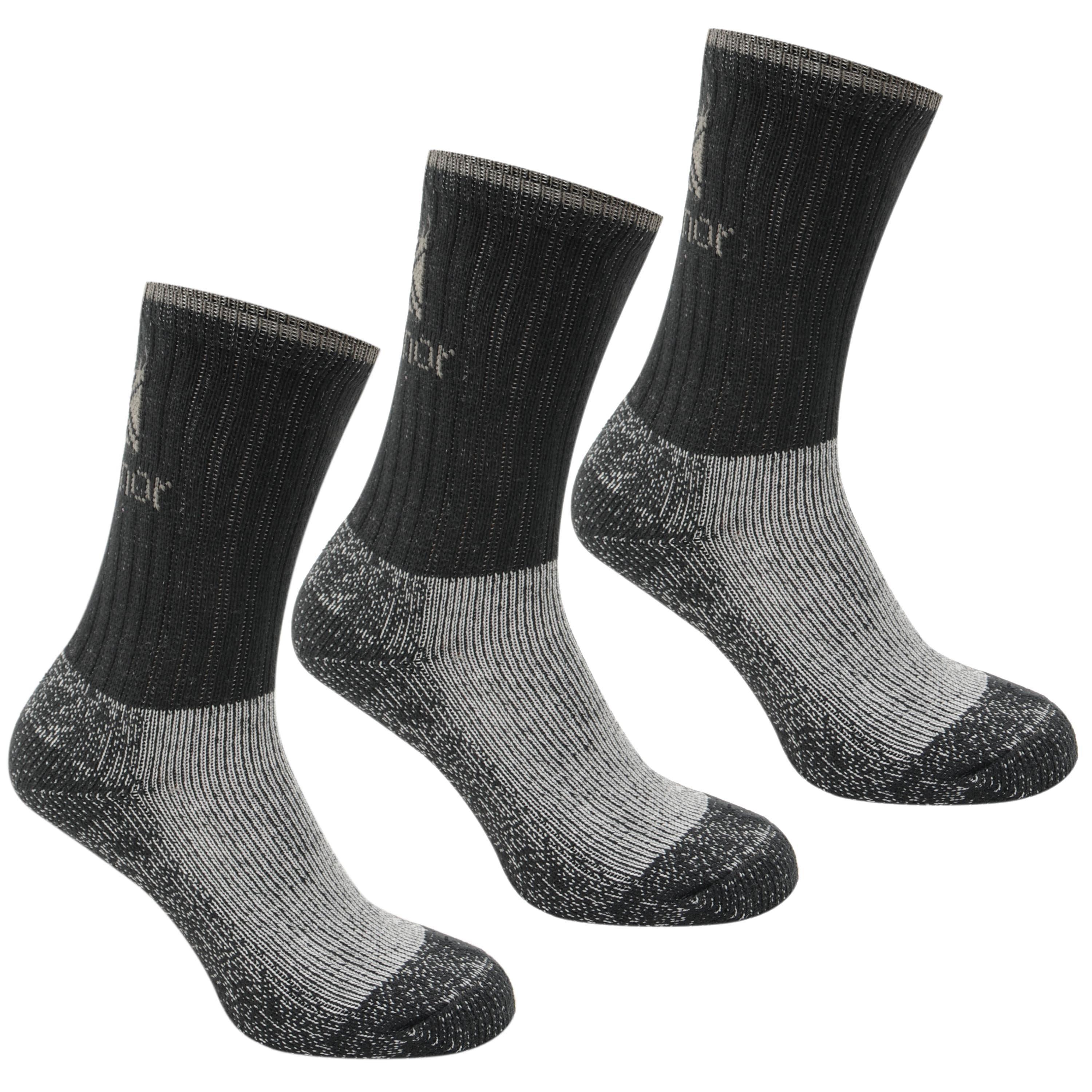 Chaussettes de randonnée Karrimor Heavyweight 3 paires Junior Les chaussettes de randonnée Karrimor Heavyweight offrent un ajustement confortable grâce à leur hauteur de mollet et leur rembourrage anatomique pour un ajustement plus proche et une conduite plus douce. Ces chaussettes de randonnée bénéficient également d'une maille épaisse et d'une construction riche en coton pour une chaleur supérieure et un confort toute la journée - finies avec la marque Karrimor pour une finition simple mais élégante.