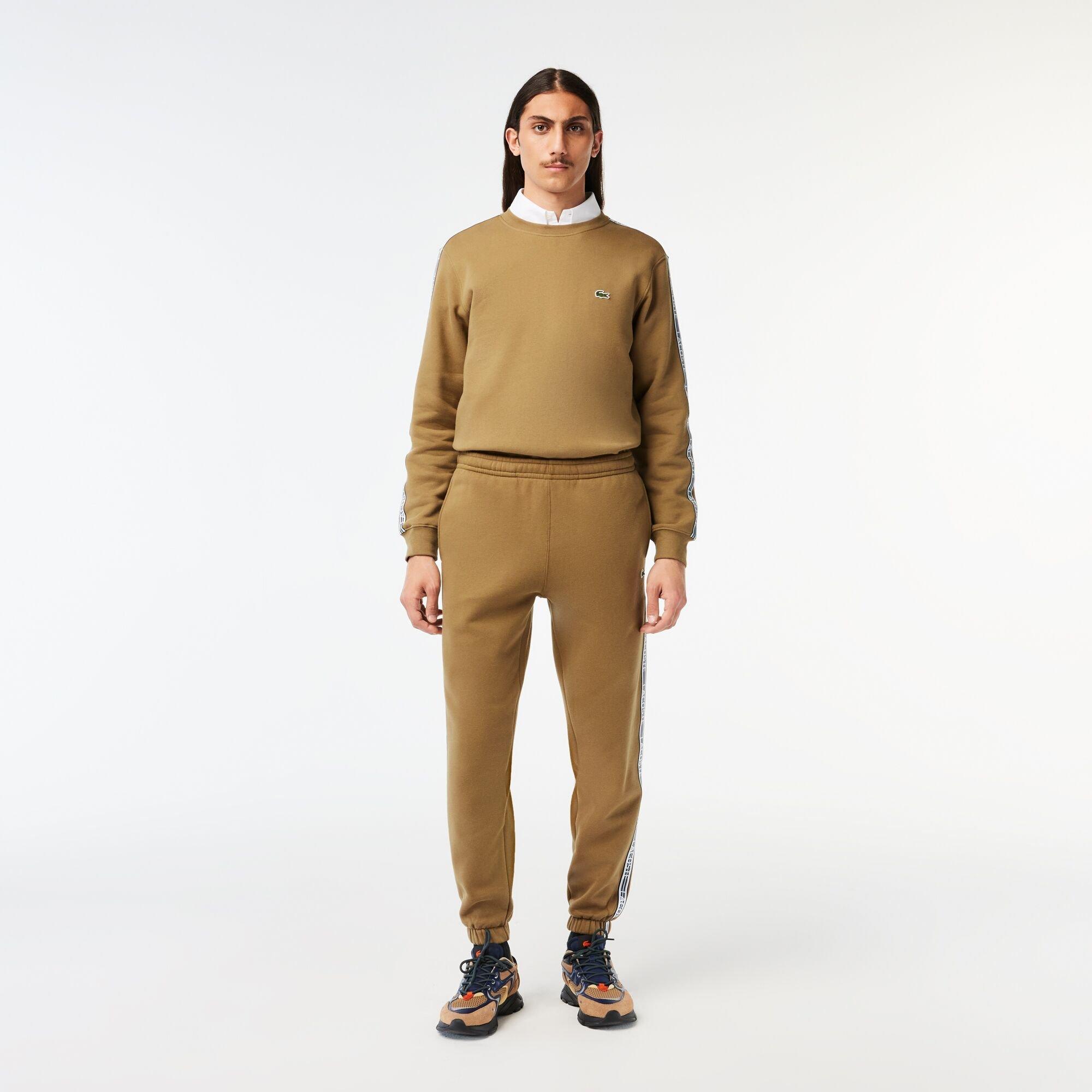 Combinaisons de couleurs et graphismes pour une identité Lacoste dynamique et créative Coupe fuselée, confortable sur le corps, hanches régulières avec jambe carotte Pantalon de survêtement en molleton brossé Poches latérales Élastiqué en bas Cordon de serrage Lacoste en relief Ruban de 2 cm avec le mot Lacoste le long des jambes Crocodile vert de 3 cm à l'avant Lié à SH5808/SH5065