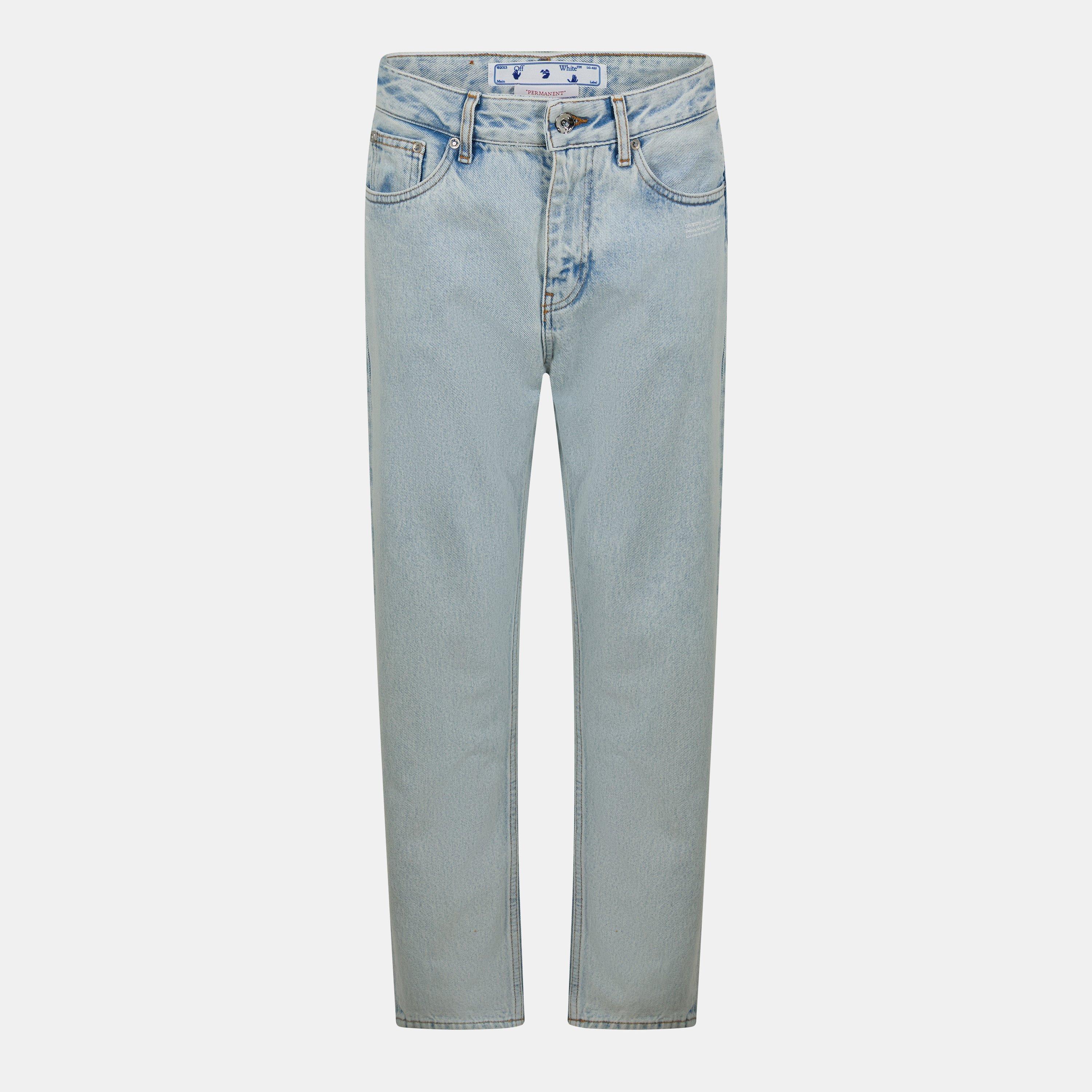 Les jeans droits à taille mi-haute d'Off-White offrent une coupe moderne et épurée de la hanche à la cheville. Le denim présente des coutures contrastées sur l'ensemble du design à cinq poches, avec une fermeture à bouton et à zip sécurisée complétant cet essentiel adaptable de la garde-robe quotidienne.
