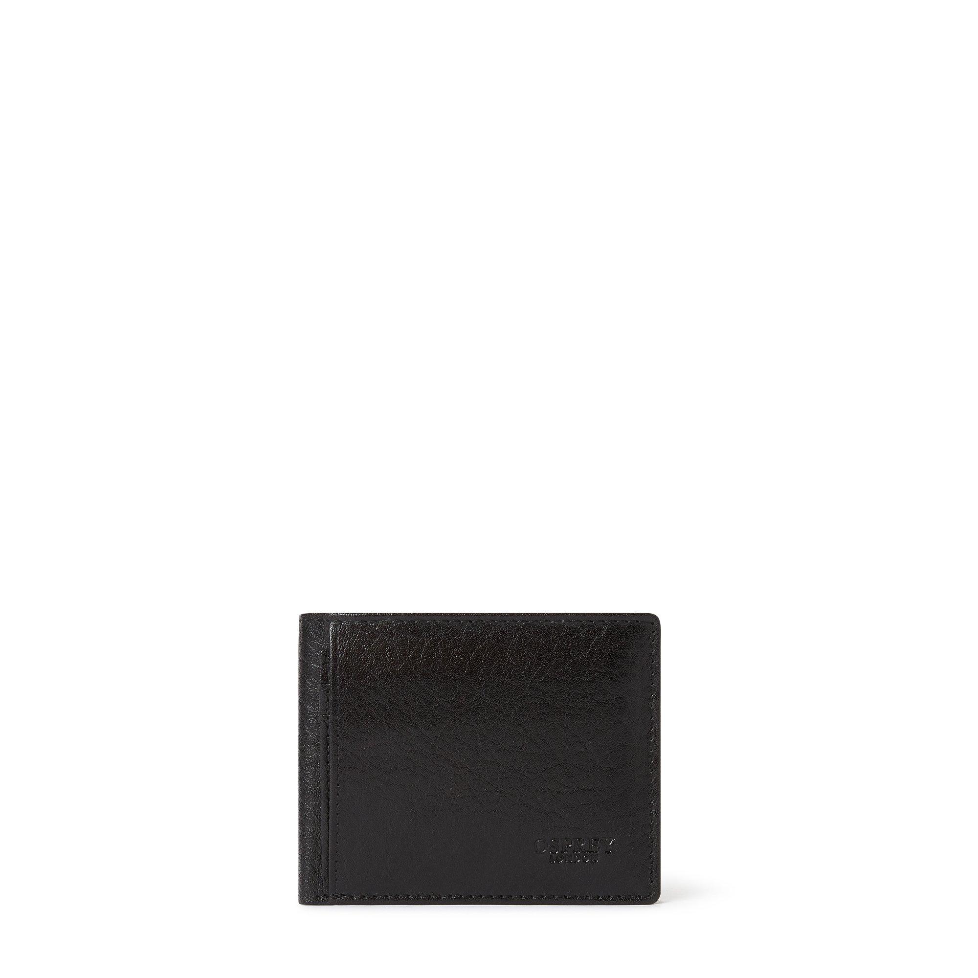 Le portefeuille pliant en cuir Highland d'Osprey London est fabriqué en cuir embossé avec un profil structuré. La fermeture à pression sécurise la poche à pièces.
