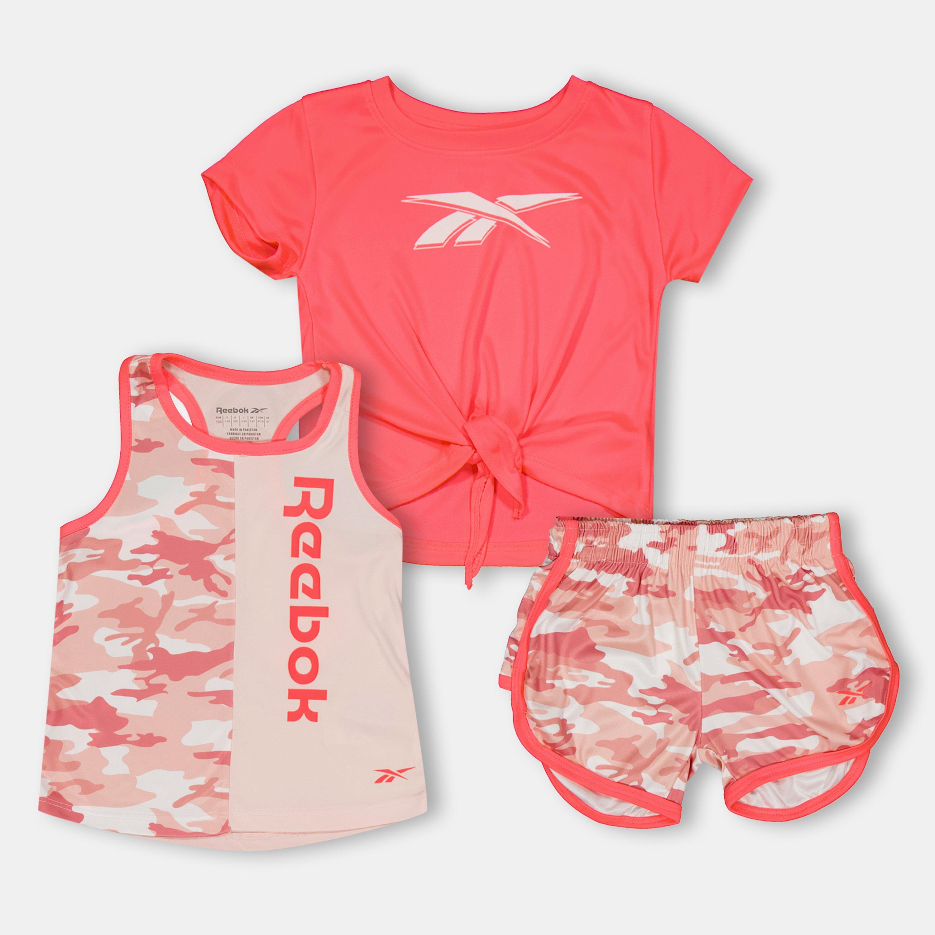 Le set haut et short camo pour enfants de Reebok associe un motif camouflage à un design fonctionnel. La tenue assortie pour enfants présente des motifs camo conçus pour le mouvement avec un ajustement confortable pour habiller les jeunes actifs au quotidien.