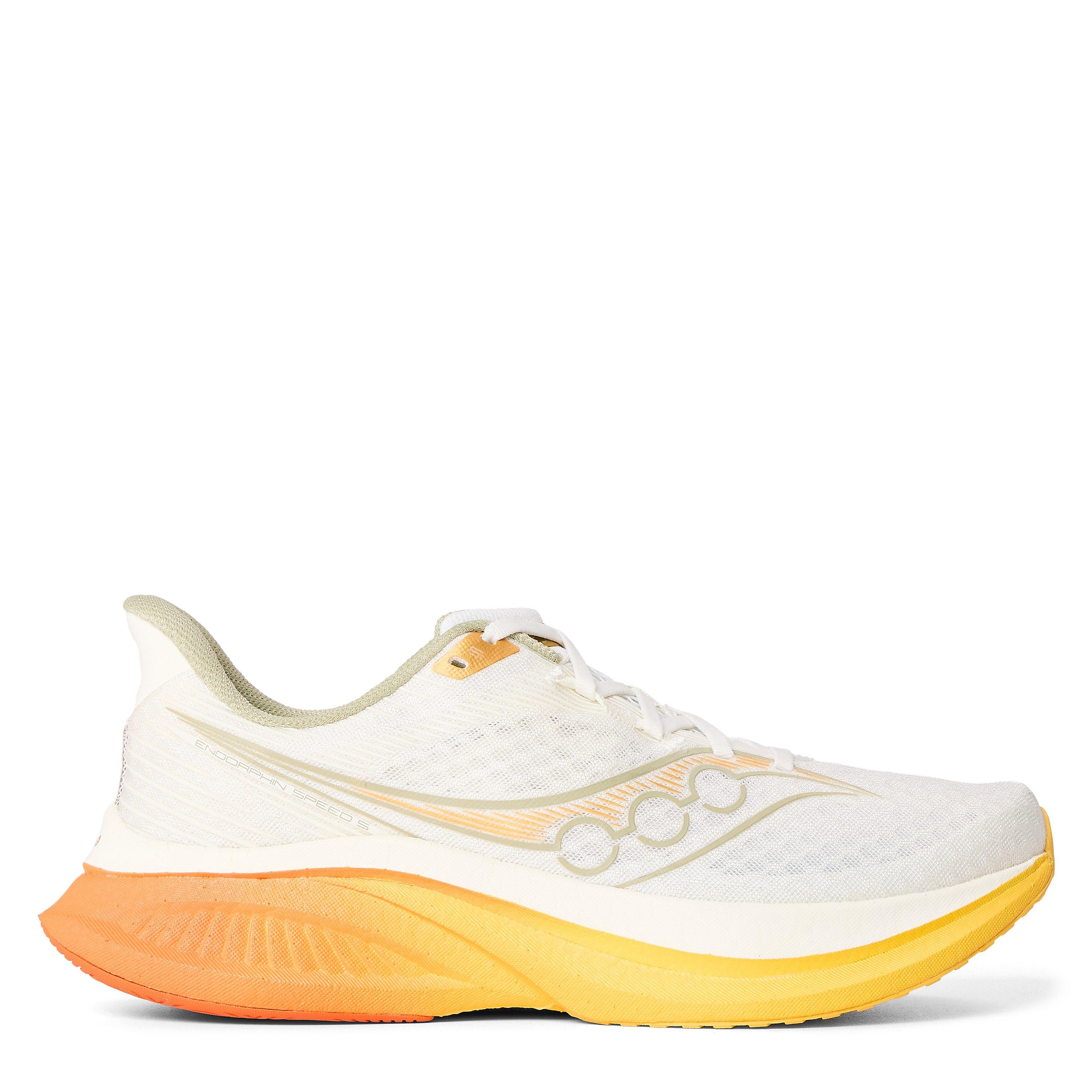 Affrontez tous les terrains avec style grâce aux chaussures de course Endorphin Speed 5 de Saucony, une marque réputée pour son innovation et sa technologie de performance. Marquées du lettrage logo signature, créant un style athlétique. Des courses de longue distance aux jours de course, ces chaussures sont conçues pour un confort et une performance durables.