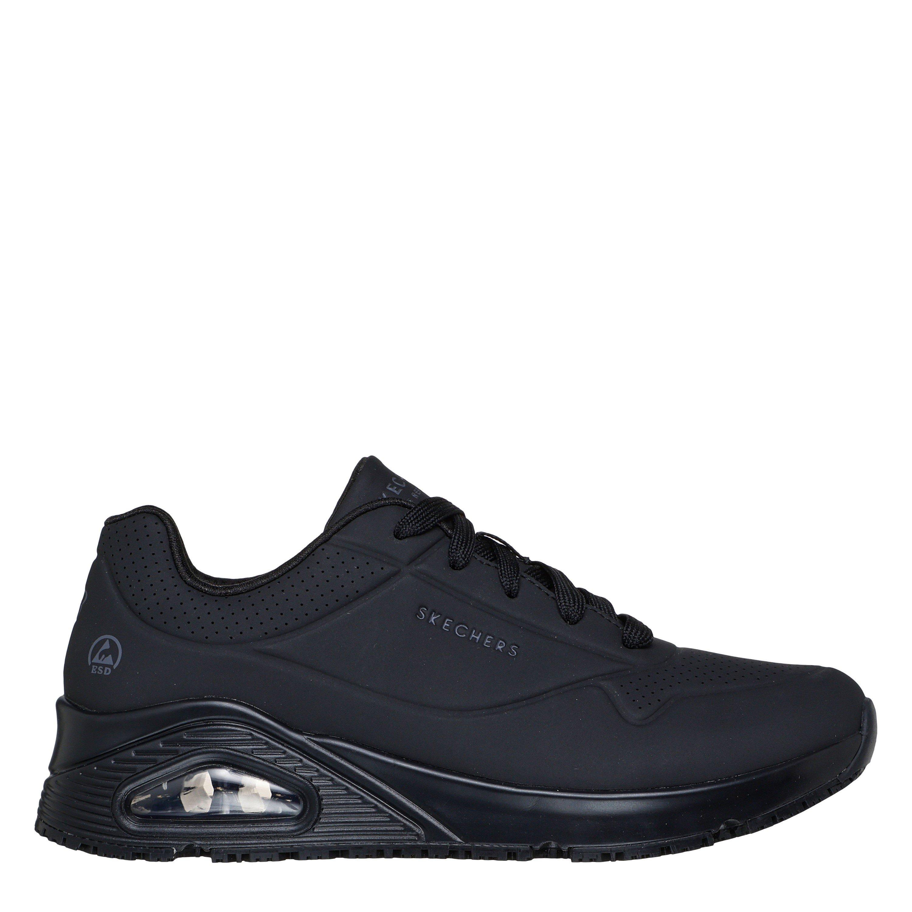 Un style préféré arrive en confort et sécurité avec Skechers Work™ : UNO SR. Ce design de travail antidérapant présente un dessus en durabuck synthétique perforé durable avec une semelle intérieure en mousse à mémoire d'air refroidie Skechers® et une semelle intermédiaire à coussin d'air visible Skech-Air®.