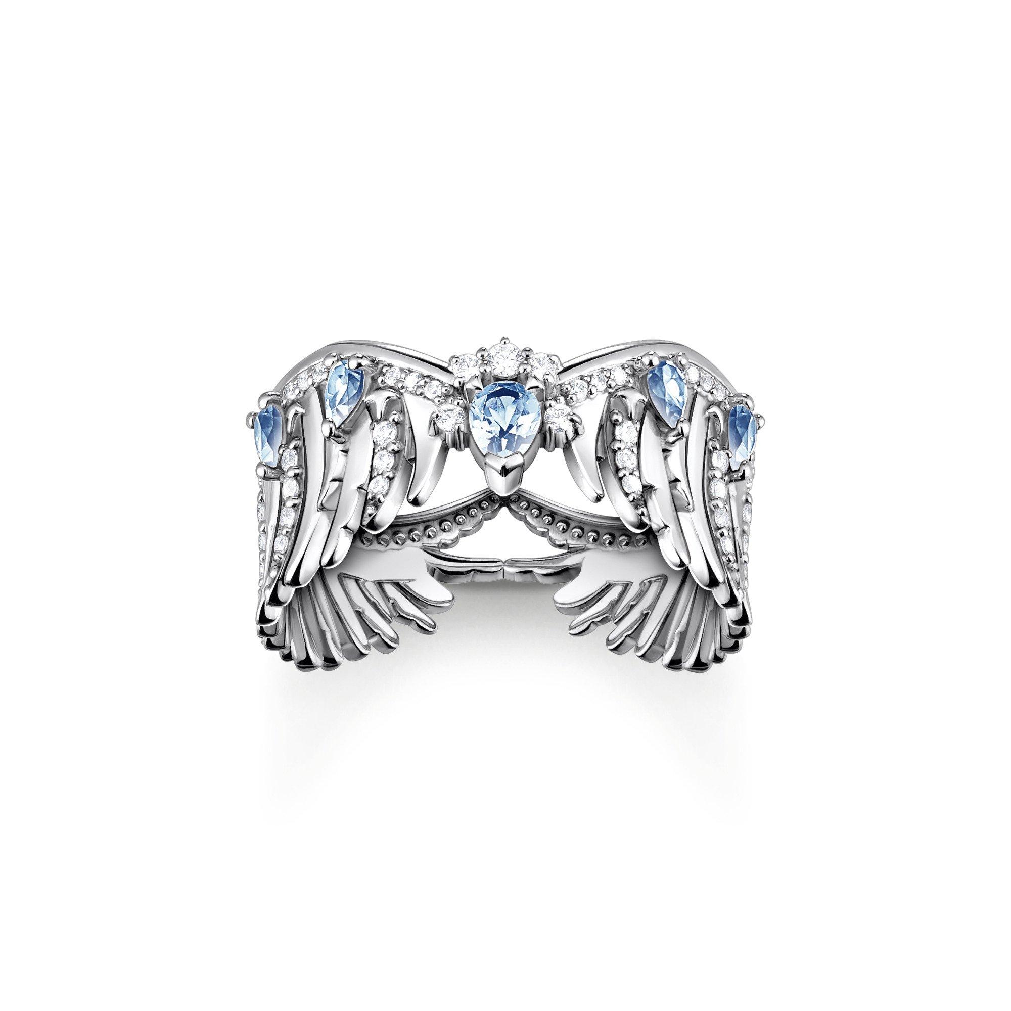 La bague empilable Phoenix Wings de Thomas Sabo capture le symbolisme mythologique dans un délicat travail du métal. Le design permet de porter la bague seule ou superposée avec d'autres pièces.