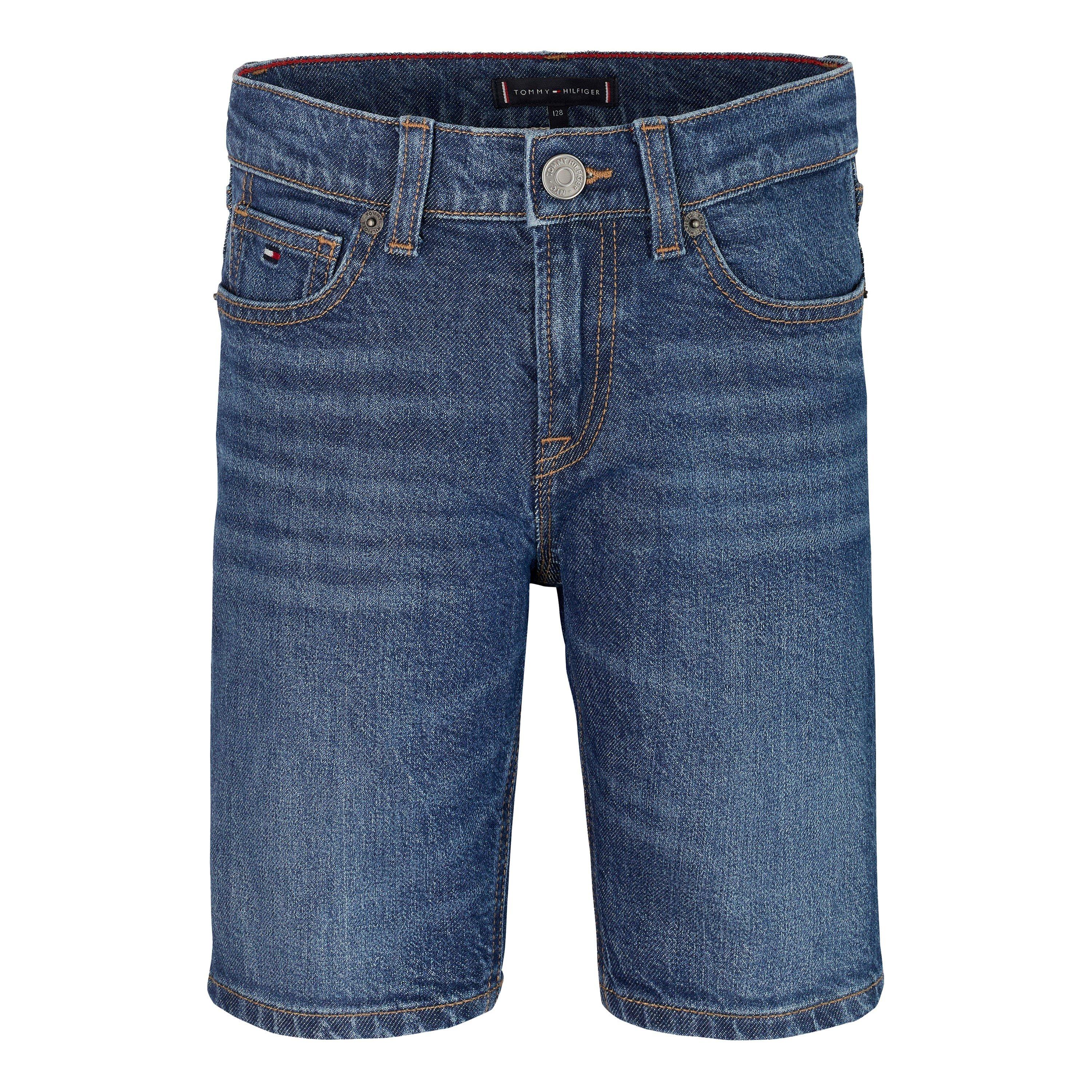 Shorts en denim bleu Scanton pour enfants Tommy Hilfiger offrant un style d'été classique avec un ajustement confortable et des détails pour les aventures quotidiennes, parfaits pour les jeunes actifs.