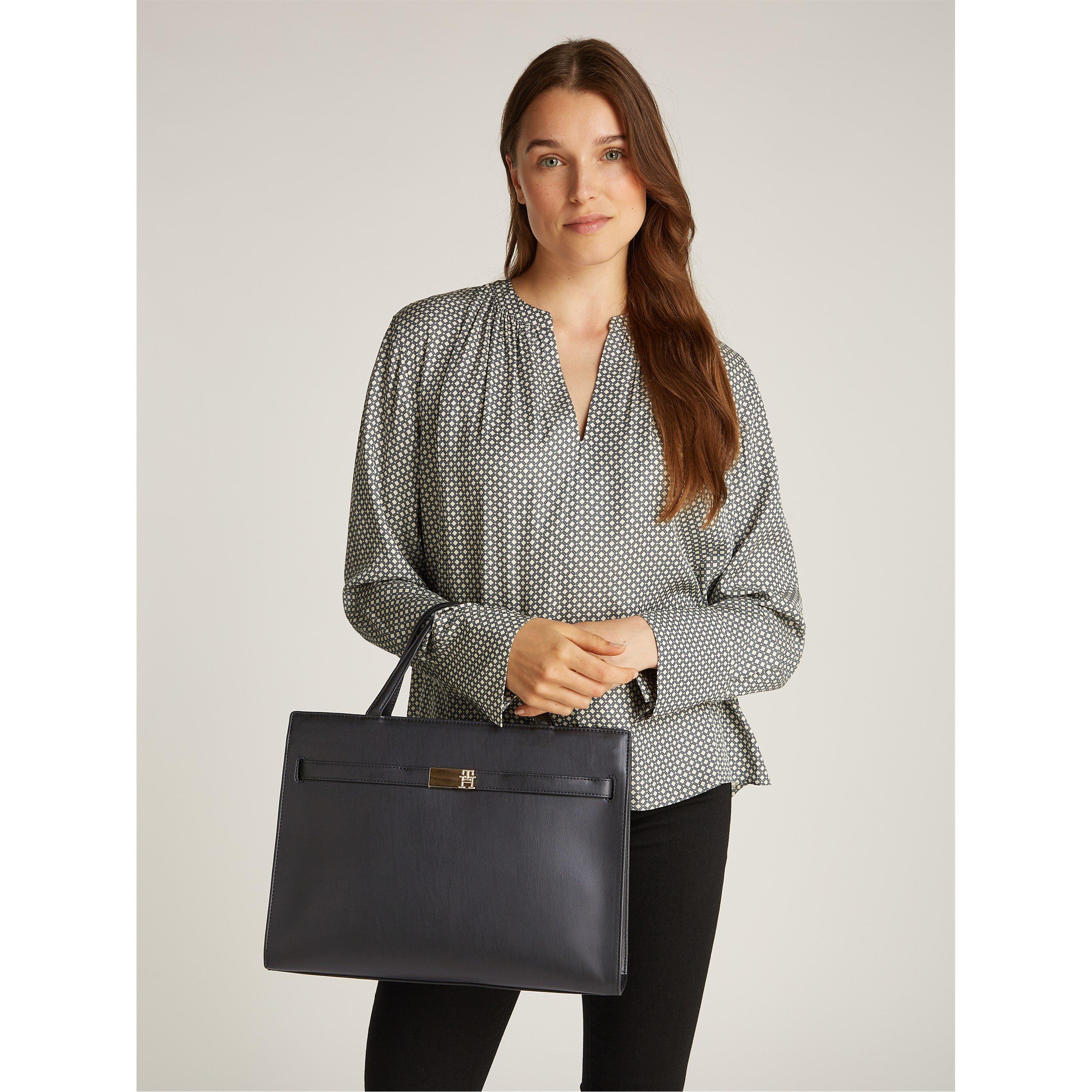 Le sac à main Heritage de Tommy Hilfiger allie design classique et fonctionnalité pratique, avec une forme structurée et des détails de marque pour un style quotidien.