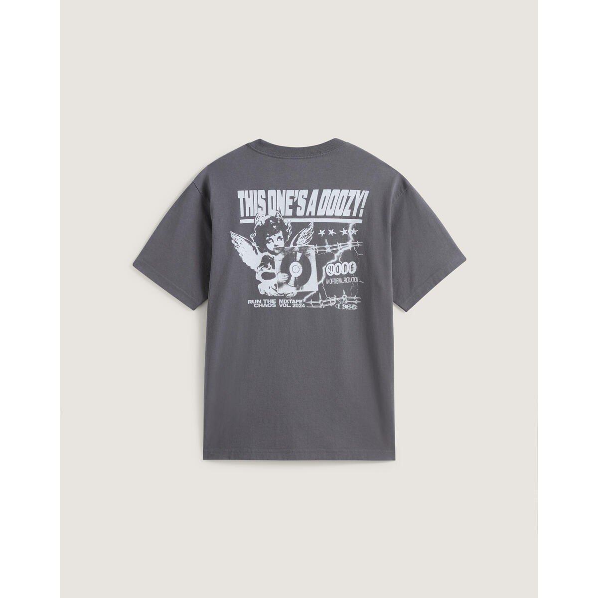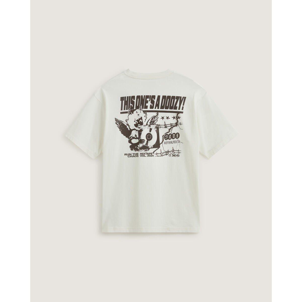 Le t-shirt Vans Earthbound a un col rond, des manches courtes et le logo Vans sur la poitrine gauche. Il présente le logo Vans avec des images d'anges au dos et a une coupe ample.