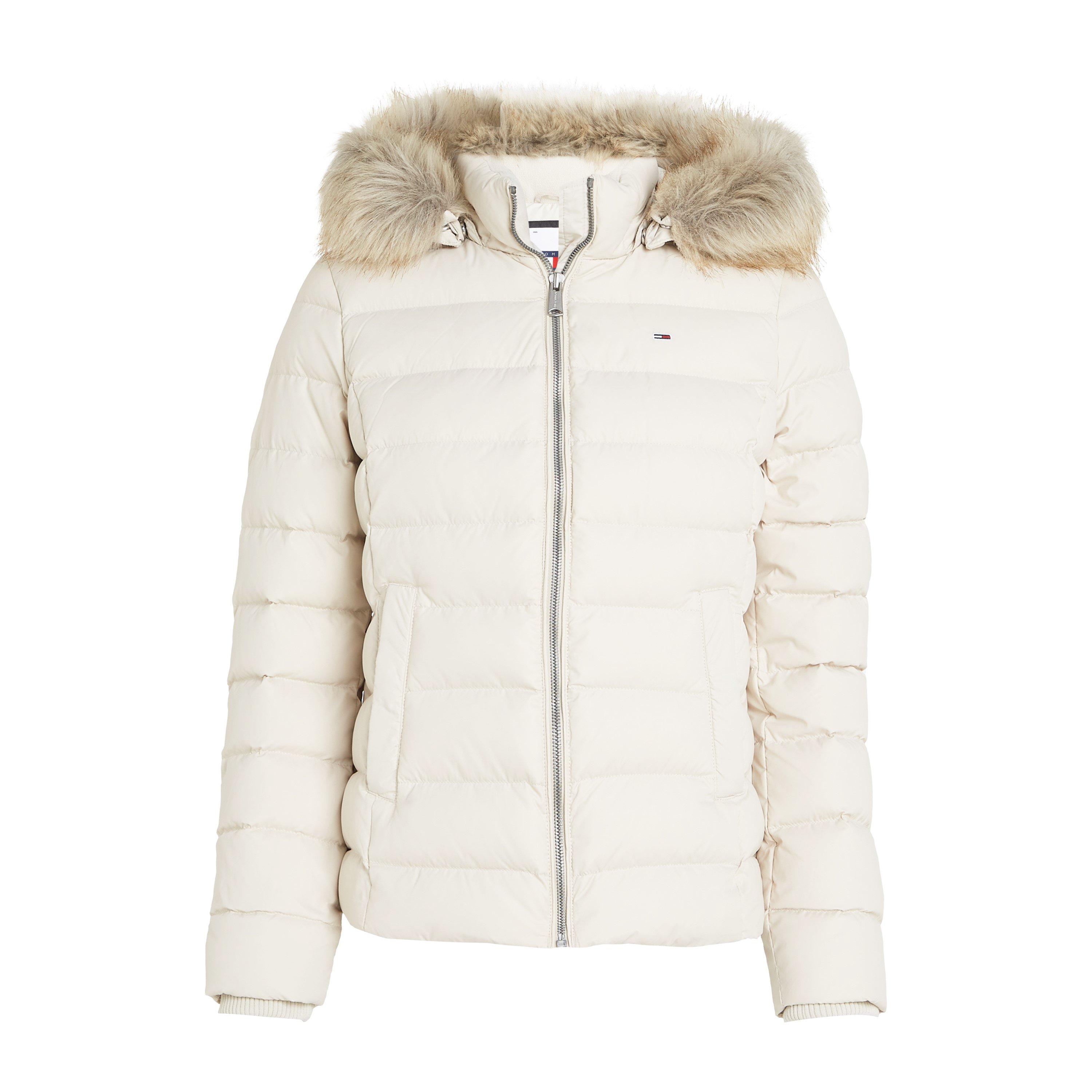 Tommy Jeans Women's Essential Quilted Wind Resistant Faux Fur Hood RDS Down Short Puffer Jacket